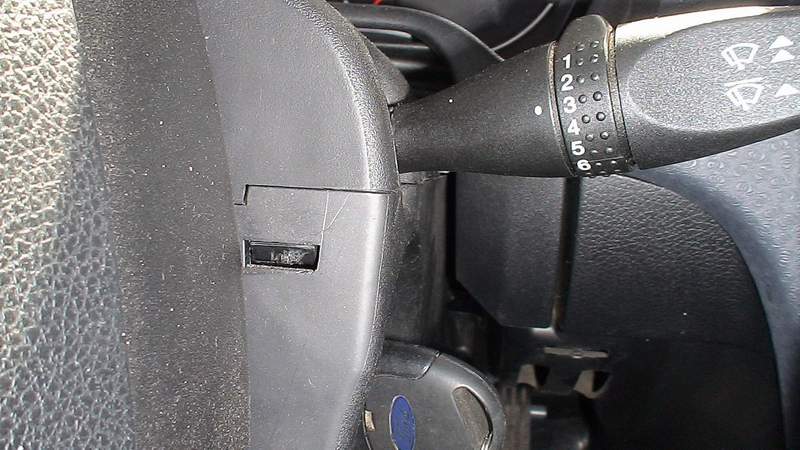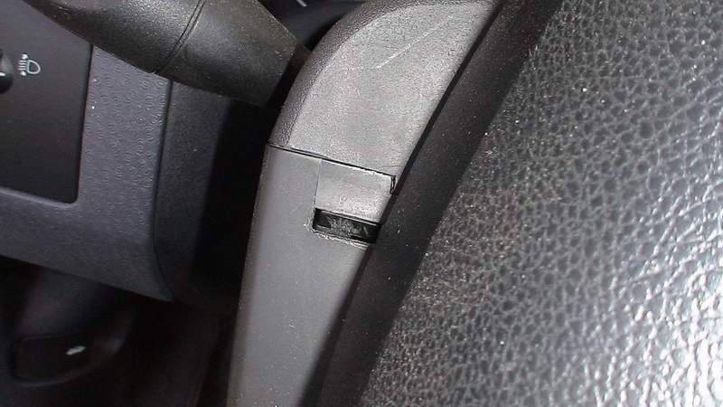 Теперь вставляем ключ в замок и включаем АСС (поворачиваем до первого щелчка). Руль разблокировался. Поворачиваем его вправо на 90 градусов и отщелкиваем защелку.